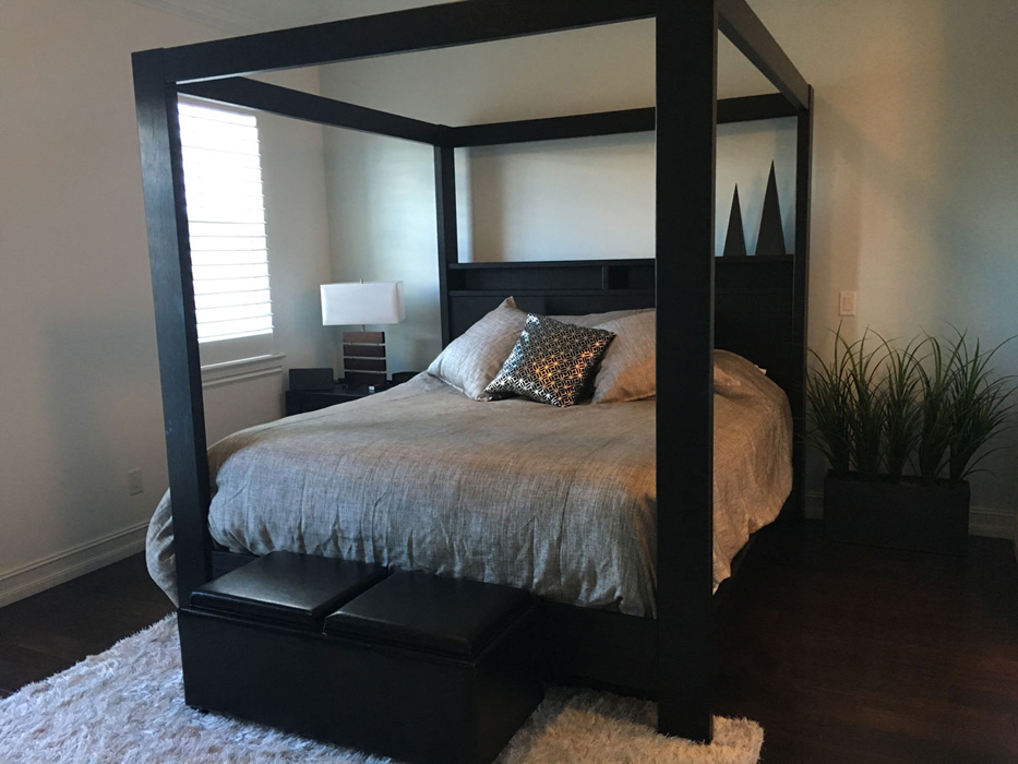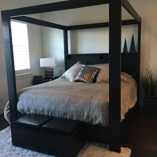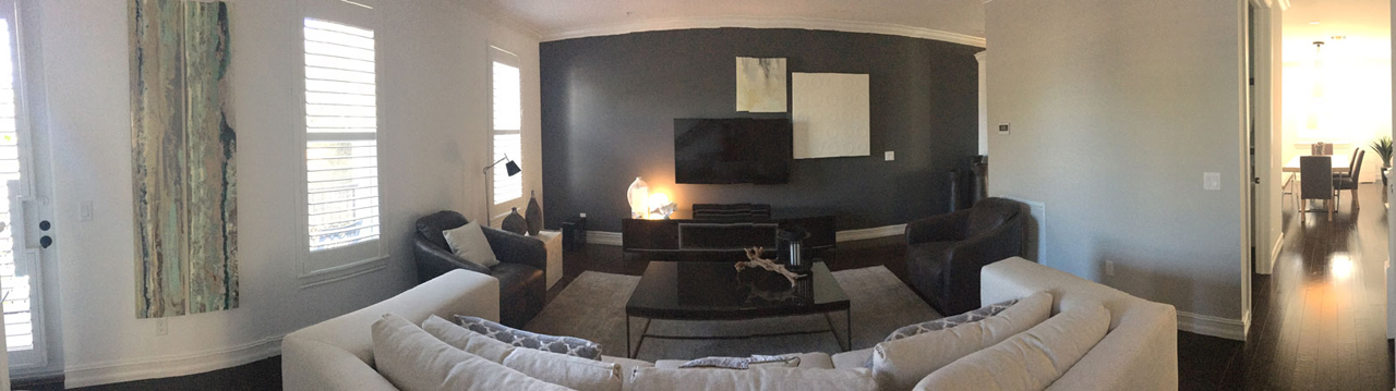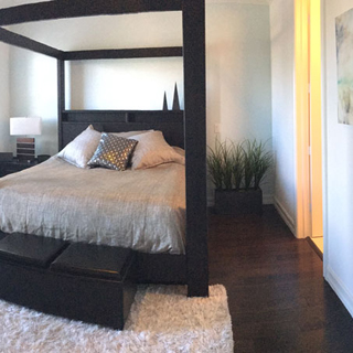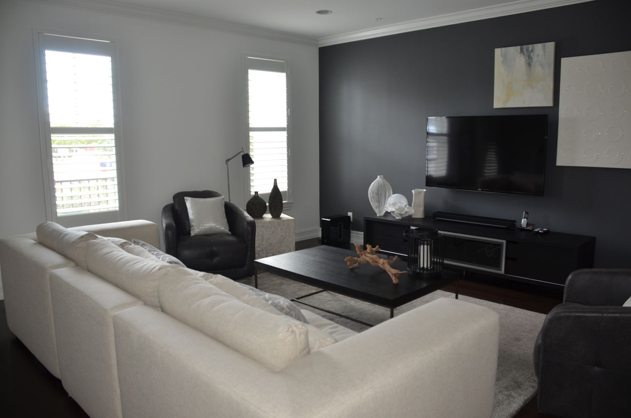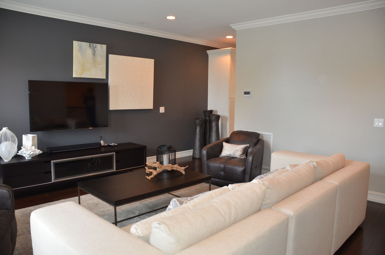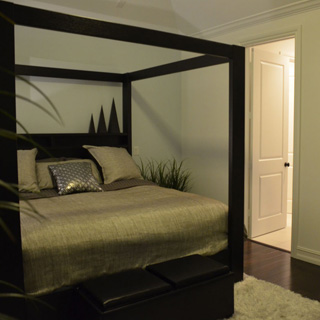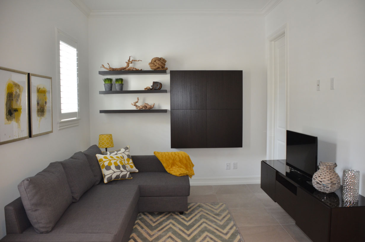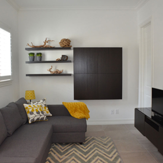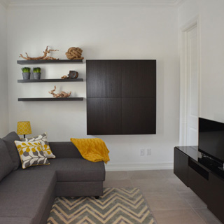 Salon avec divan sectionnel (devenant lit double, avec literie complète)
